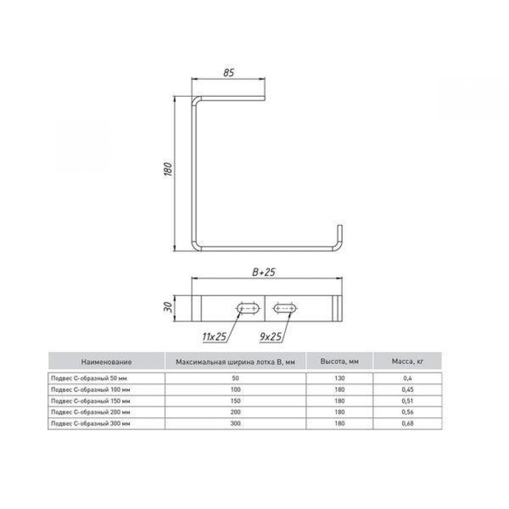 Технические характеристики Подвес С-образ. 200мм EKF pc200