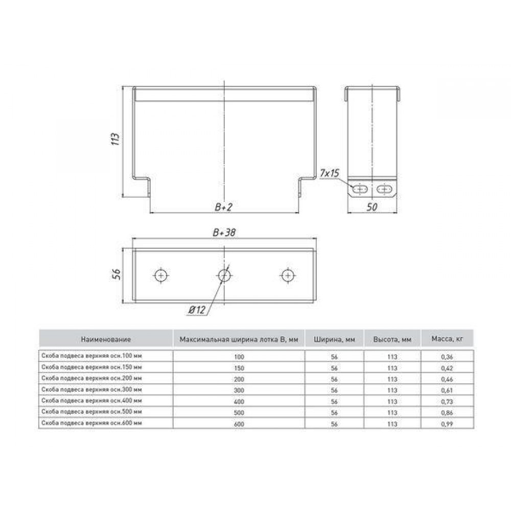 Технические характеристики Скоба подвеса верхняя 300мм EKF pv300