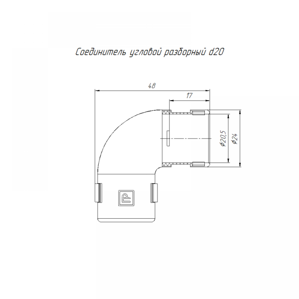 Технические характеристики Соединитель угловой 90град. разборный d20мм безгалогенный (HF) атмосферостойкий сер. Промрукав PR13.0361