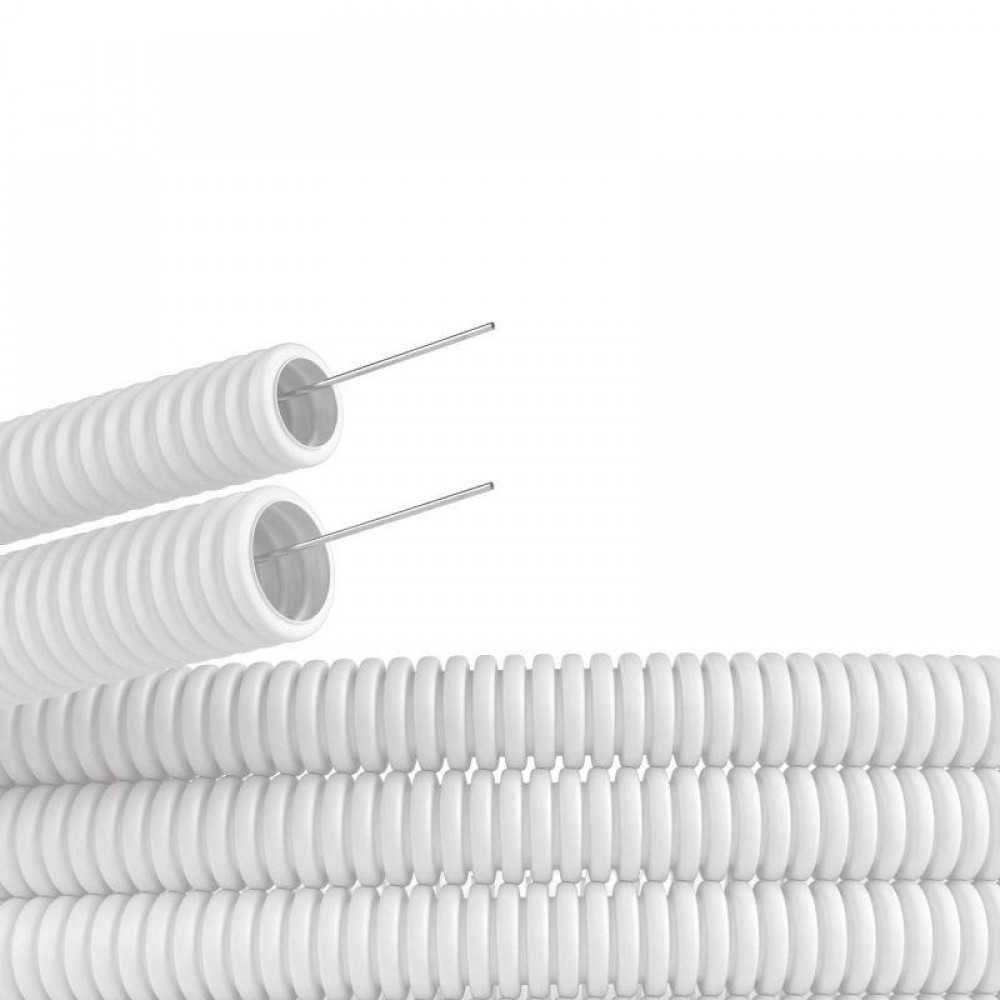 Гибкая труба, не поддерживающая горение, имеет диаметр 20 мм. Для облегчения прокладки кабеля в комплект входит протяжка. Цвет - белый.