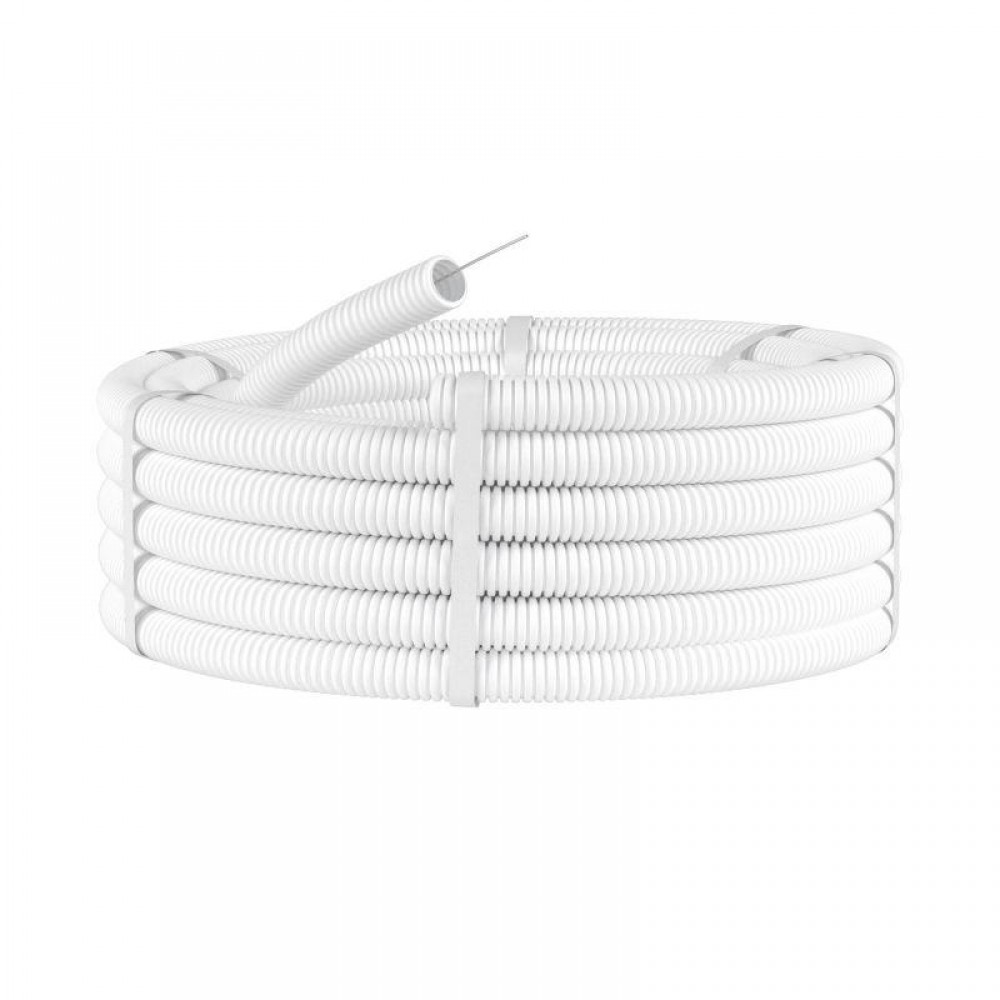 Труба гофрированная ПЛЛ гибкая d20мм с протяжкой безгалоген. (HF) ПВ-0 бел. (уп.100м) DKC 81820