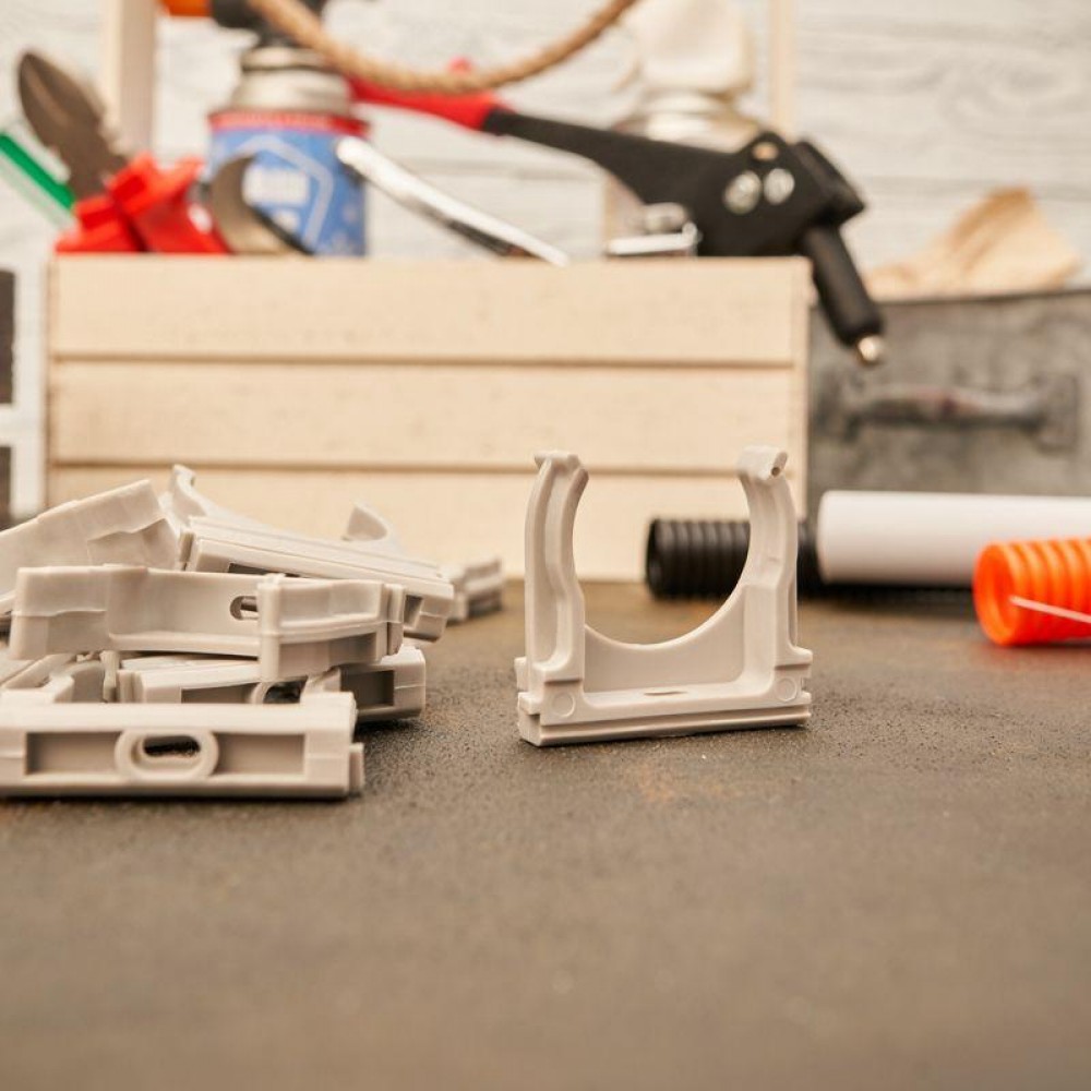 Крепеж для гофры, гофротрубы (клипса для гофротрубы), труб ПВХ и кабеля изготовлен из качественных материалов по передовым технологиям пластикового литья. Оптимальная форма с грамотно расположенными ребрами жесткости обеспечивают надежный захват трубы и достаточную жесткость удержания в течении длительного времени. Качественный пластик и прочностные ребра жесткости не дают ломаться зажиму на холоде и слабнуть на жаре. Зажимы противостоят ультрафиолетовым излучениям, солям, кислой среде и алкалинам.