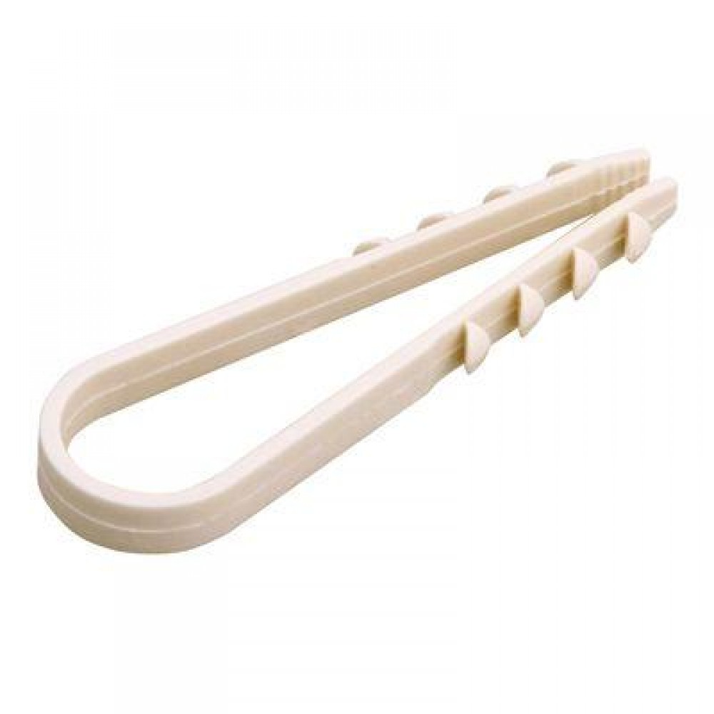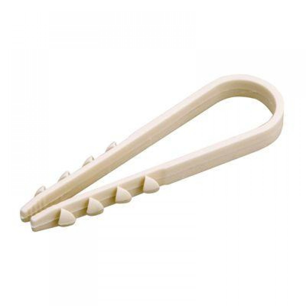Круглый дюбель-хомут 19-25 мм предназначен для крепления круглого кабеля к поверхности открытым или закрытым способом. Благодаря особой форме может также использоваться для крепления нескольких кабелей. Дюбель-хомут представляет собой крепежное изделие с боковыми шипами и петлей для удержания кабеля. За счет шипов дюбель легко фиксируется в отверстии, но для его извлечения понадобится приложить усилие. Важно: для надежной фиксации дюбеля необходимо соблюдать точные параметры при сверлении отверстия, а для этого желательно использовать новую оснастку, которая не успела износиться. Дюбель может быть установлен в бетон, кирпич, дерево, газобетон и природный камень. Морозостойкие добавки добавляют крепежу устойчивость к низким температурам и позволяют использовать его на улице или в неотапливаемых помещениях. В упаковке 100 дюбель-хомутов белого цвета.