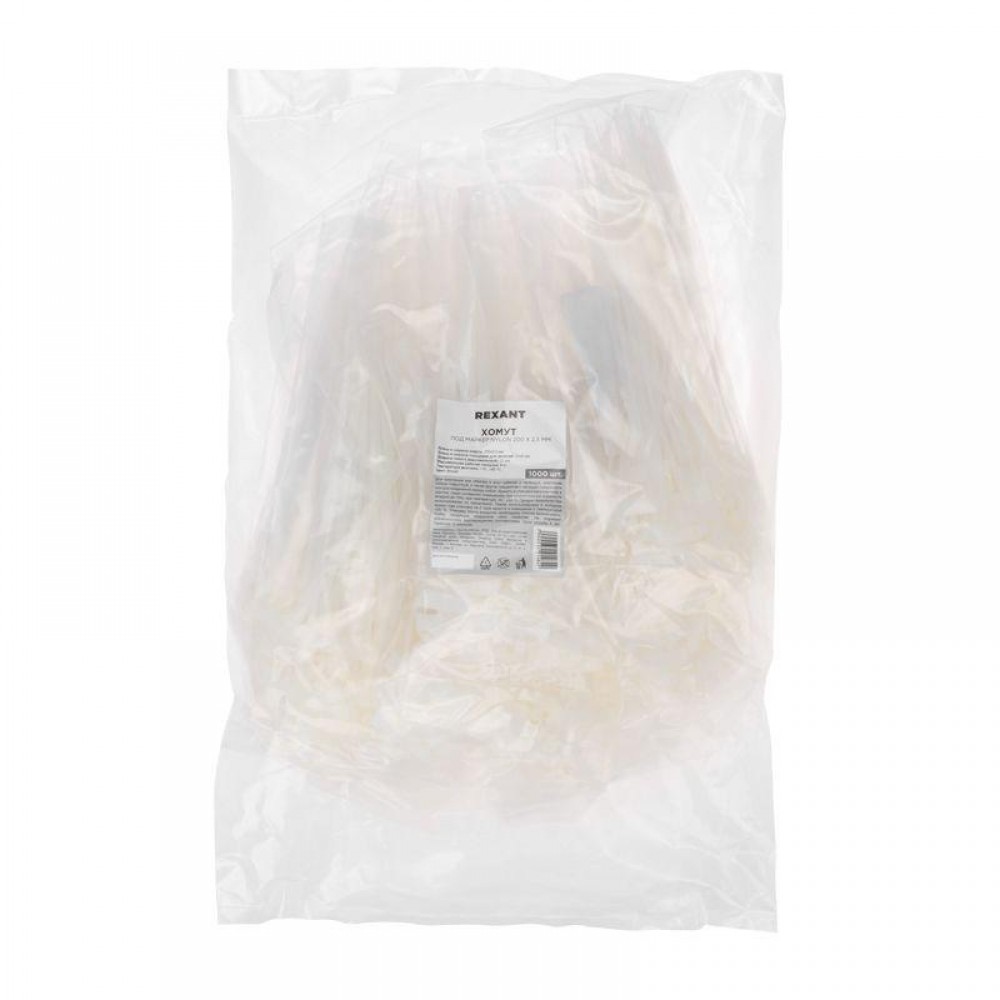 Технические характеристики Хомут кабельный 2.5х200 нейл. под маркер бел. (уп.100шт) Rexant 07-0206