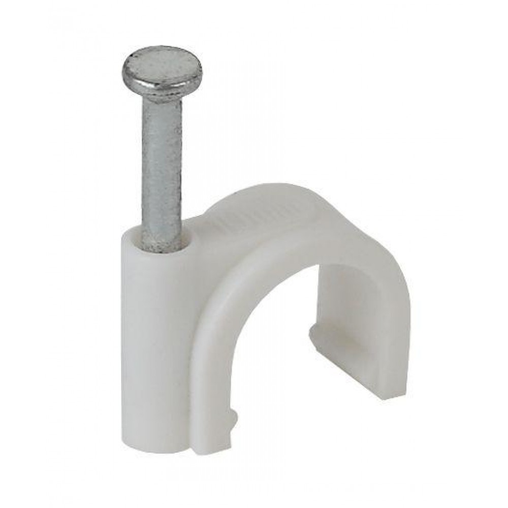 Предназначены для крепления круглых и плоских кабелей. Изготовлены из гибкого негорючего ударопрочного полипропилена, гвоздь - закаленная оцинкованная сталь.