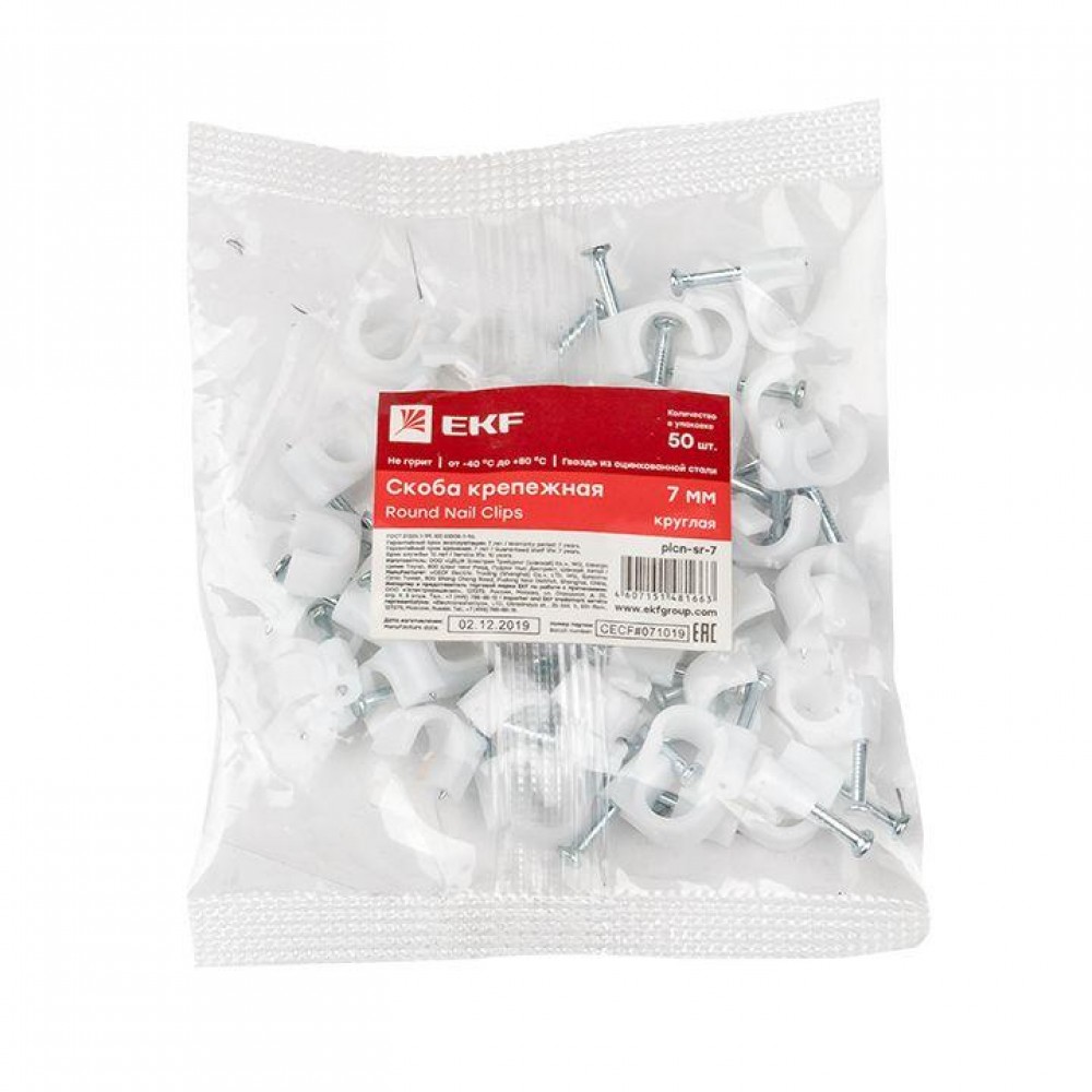 Скоба крепежная круглая с гвоздем d7мм пластик. (уп.50шт) EKF plcn-sr-7
