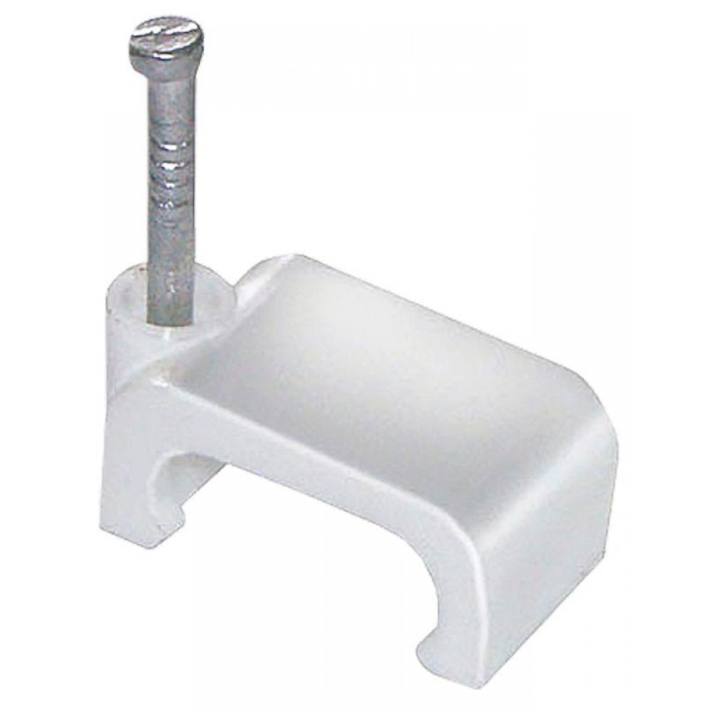 Скоба с гвоздём предназначена для быстрого и надежного крепления плоских кабелей к дереву, прессованному картону, швам кирпичной кладки, к штукатурке, бетону, кирпичу. Изготовлены из гибкого негорючего ударопрочного полипропилена, гвоздь - закаленная оцинкованная сталь.