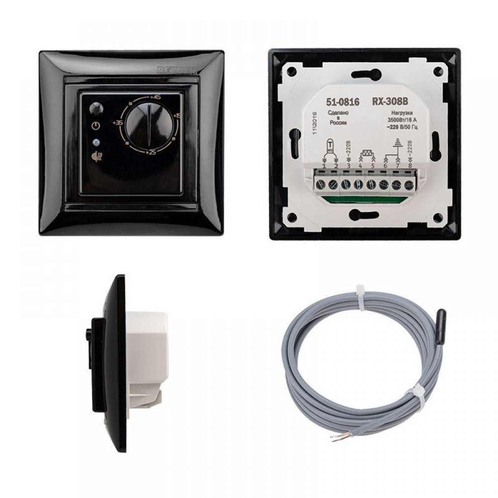 Терморегулятор механический RX-308B черн. (совместим с Legrand серии Valena) Rexant 51-0816