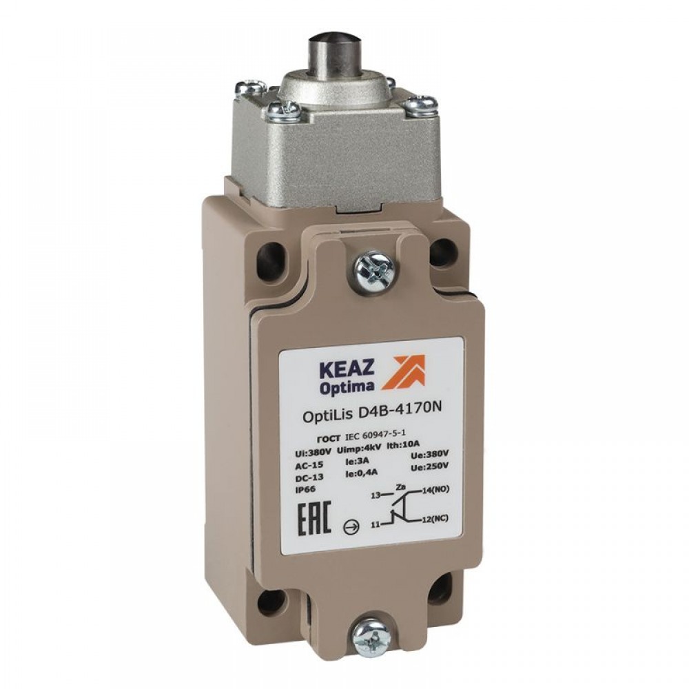 Технические характеристики Выключатель концевой OptiLiS D4B-4170N толкатель метал. EN 50041 XCKJ161H29 КЭАЗ 365332