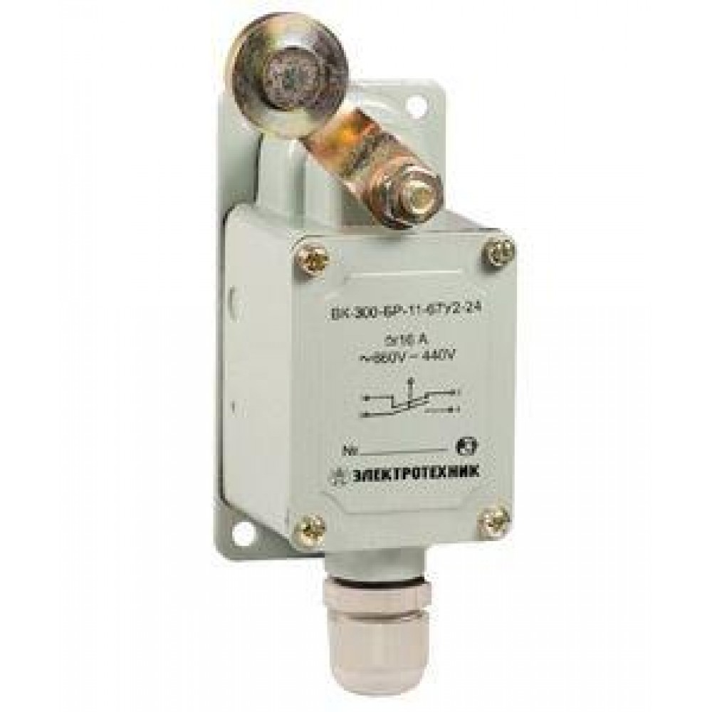 Технические характеристики Выключатель концевой ВК-300-БР-11-67У2-11 рычаг с роликом с сальником ход вправо самовозврат ступень 1- 41мм IP67 Электротехник ET502348