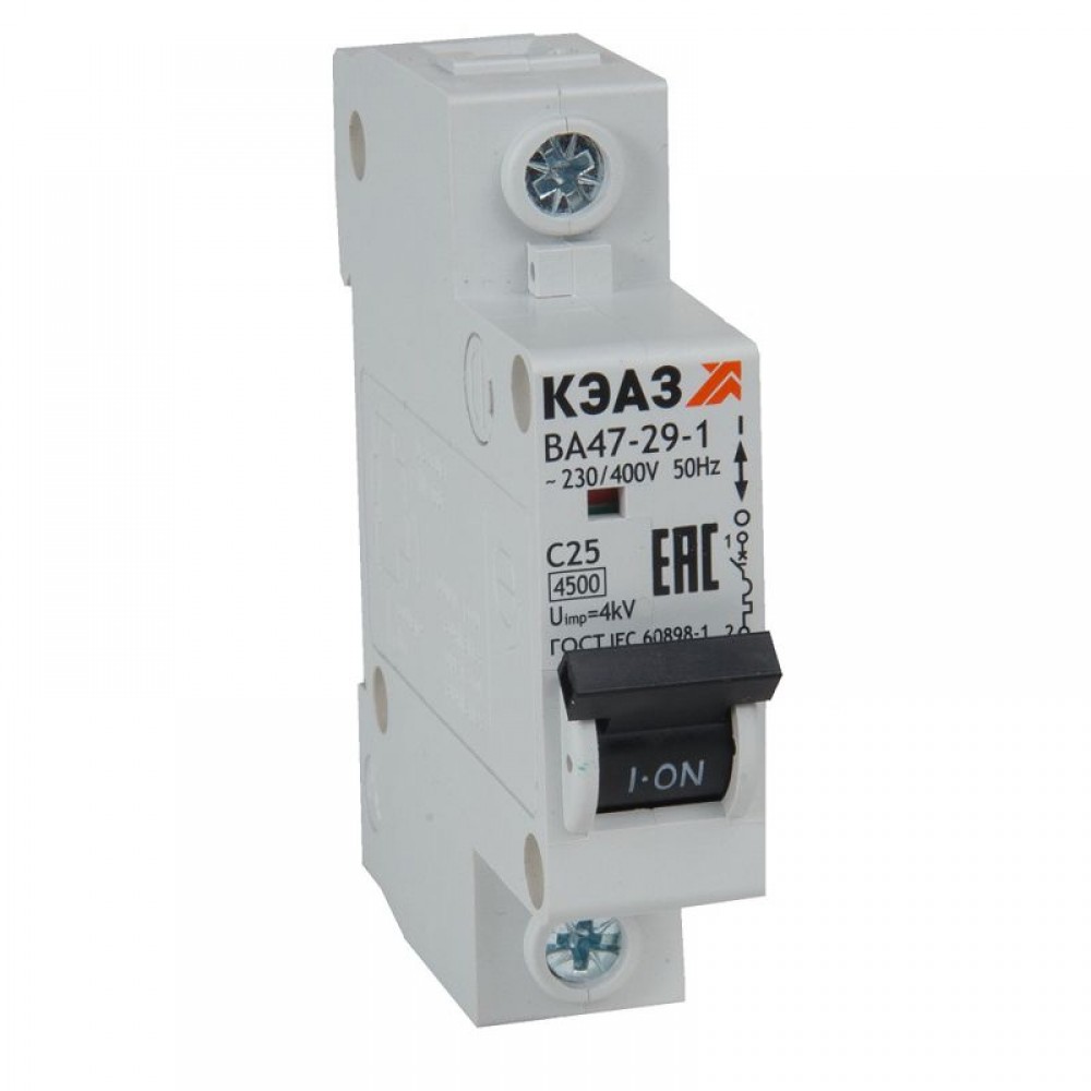 Выключатель автоматический модульный 1п C 63А 4.5кА ВА47-29-1C63-УХЛ3 КЭАЗ 318207