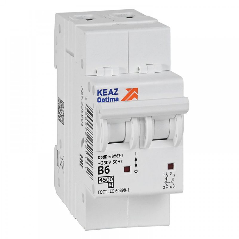 Выключатель автоматический модульный 2п B 6А 4.5кА OptiDin BM63-2B6-4.5-УХЛ3 КЭАЗ 329508