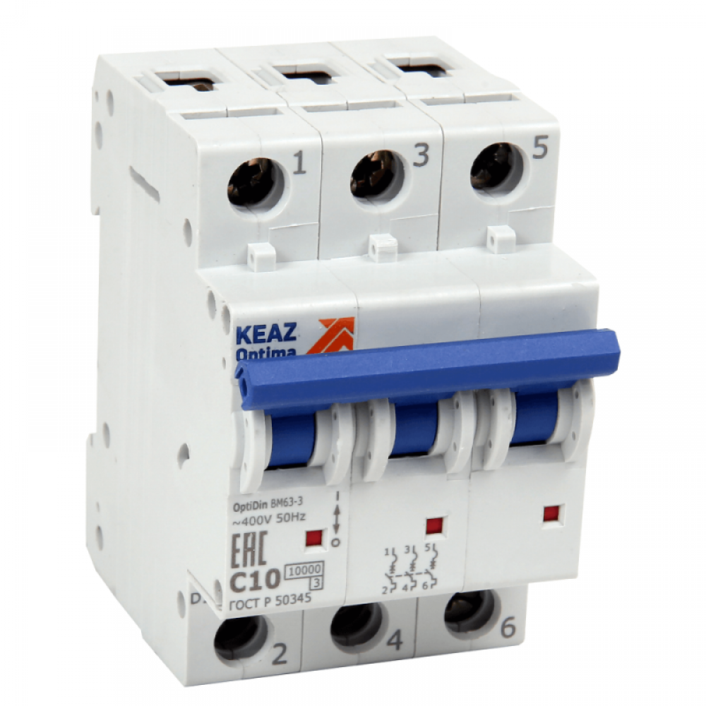 Выключатель автоматический модульный 3п C 4А 10кА OptiDin BM63-3C4-10-УХЛ3 КЭАЗ 249288