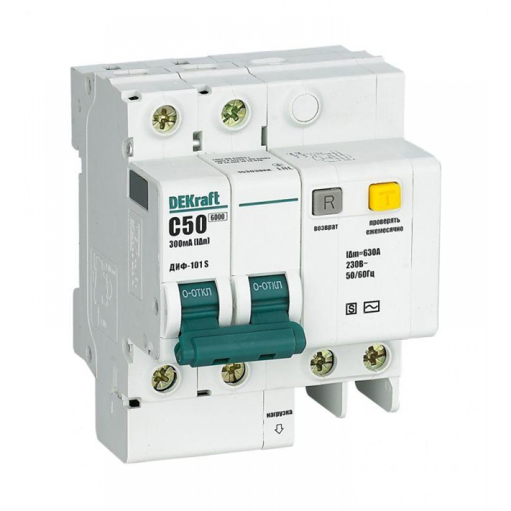 Выключатель автоматический дифференциального тока 2п 50А 300мА ДИФ-101 S селект. со встроен. защит. от сверхтоков DEKraft 15308DEK