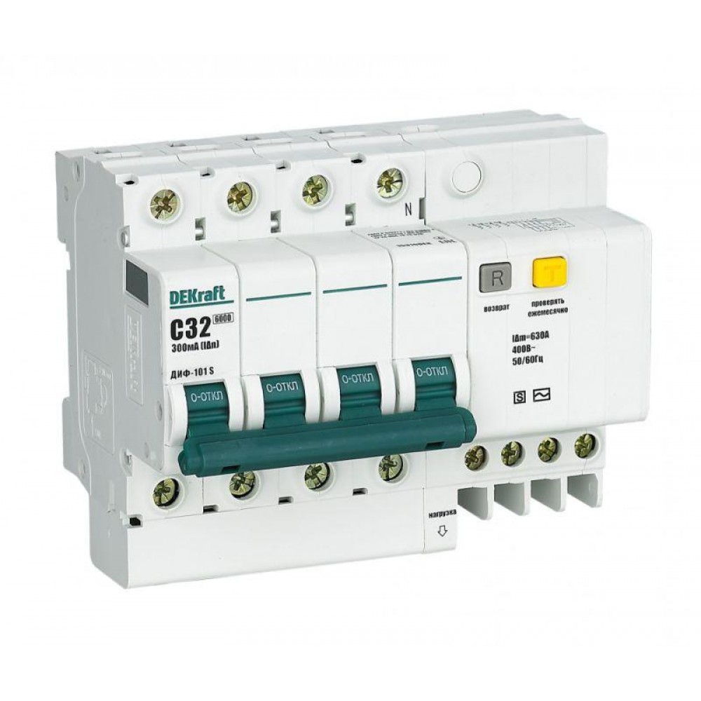 Выключатель автоматический дифференциального тока 4п 32А 300мА ДИФ-101 S селект. со встроен. защит. от сверхтоков DEKraft 15316DEK
