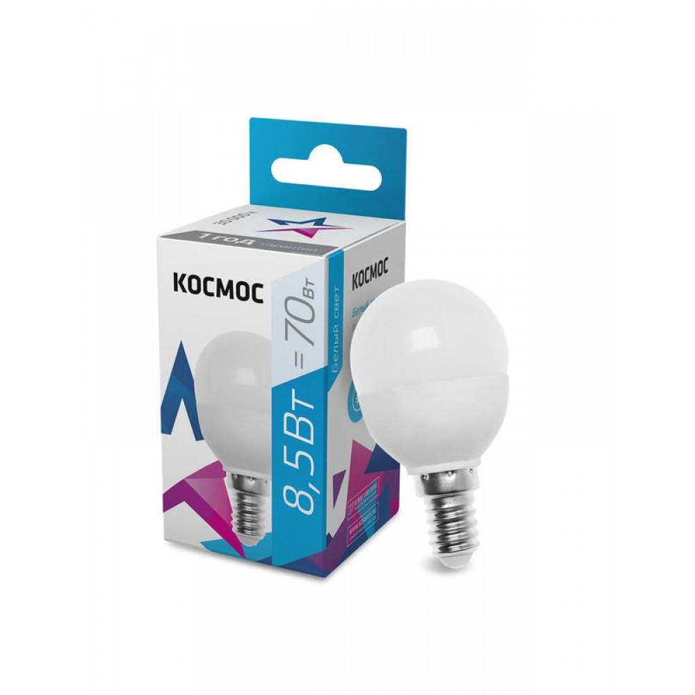 Технические характеристики Лампа светодиодная 8.5Вт шар 4500К бел. E14 220В КОСМОС LkecLED8.5wGL45E1445