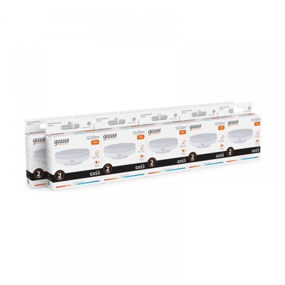 Технические характеристики Лампа светодиодная Elementary 15Вт таблетка 3000К тепл. бел. GX53 1020лм GAUSS 83815