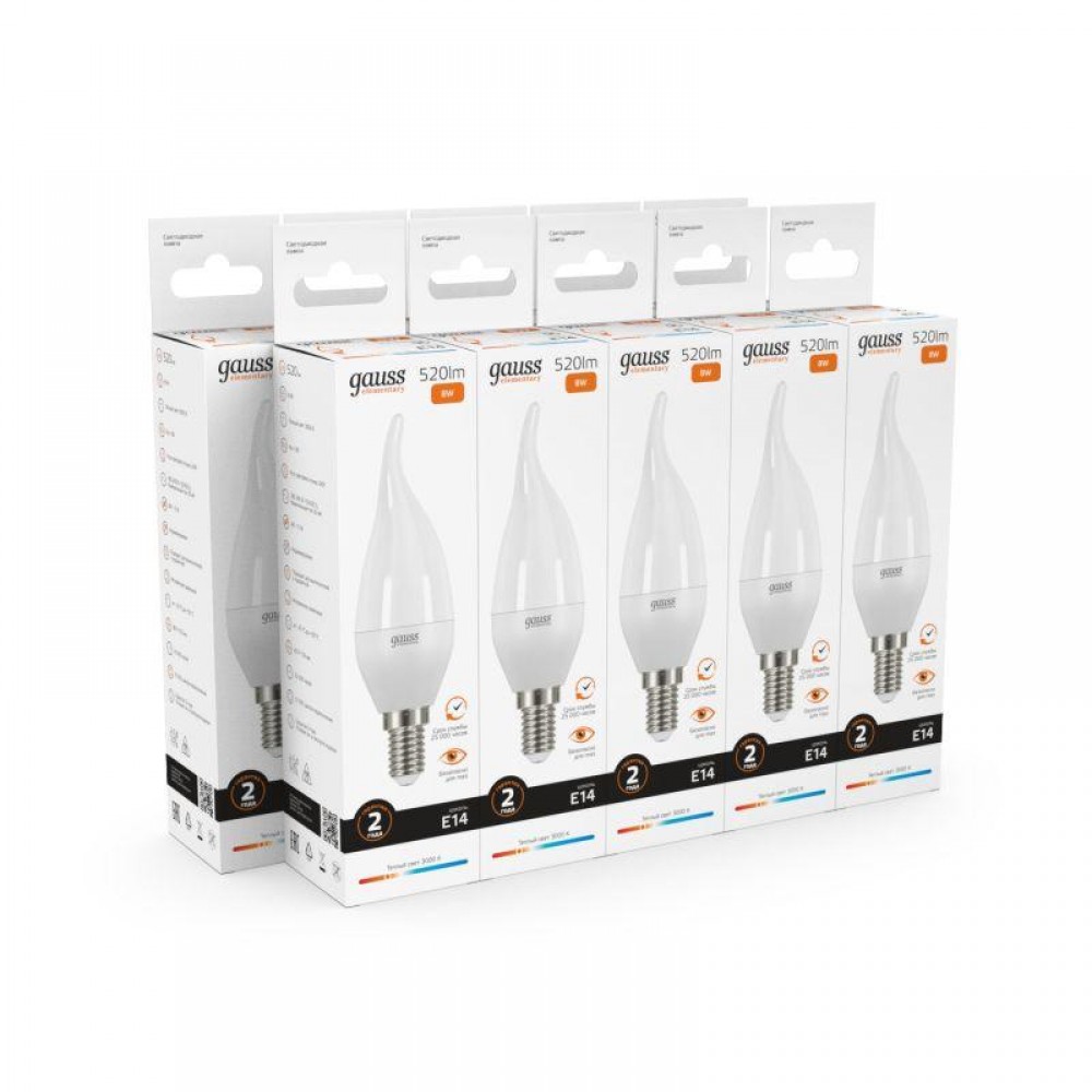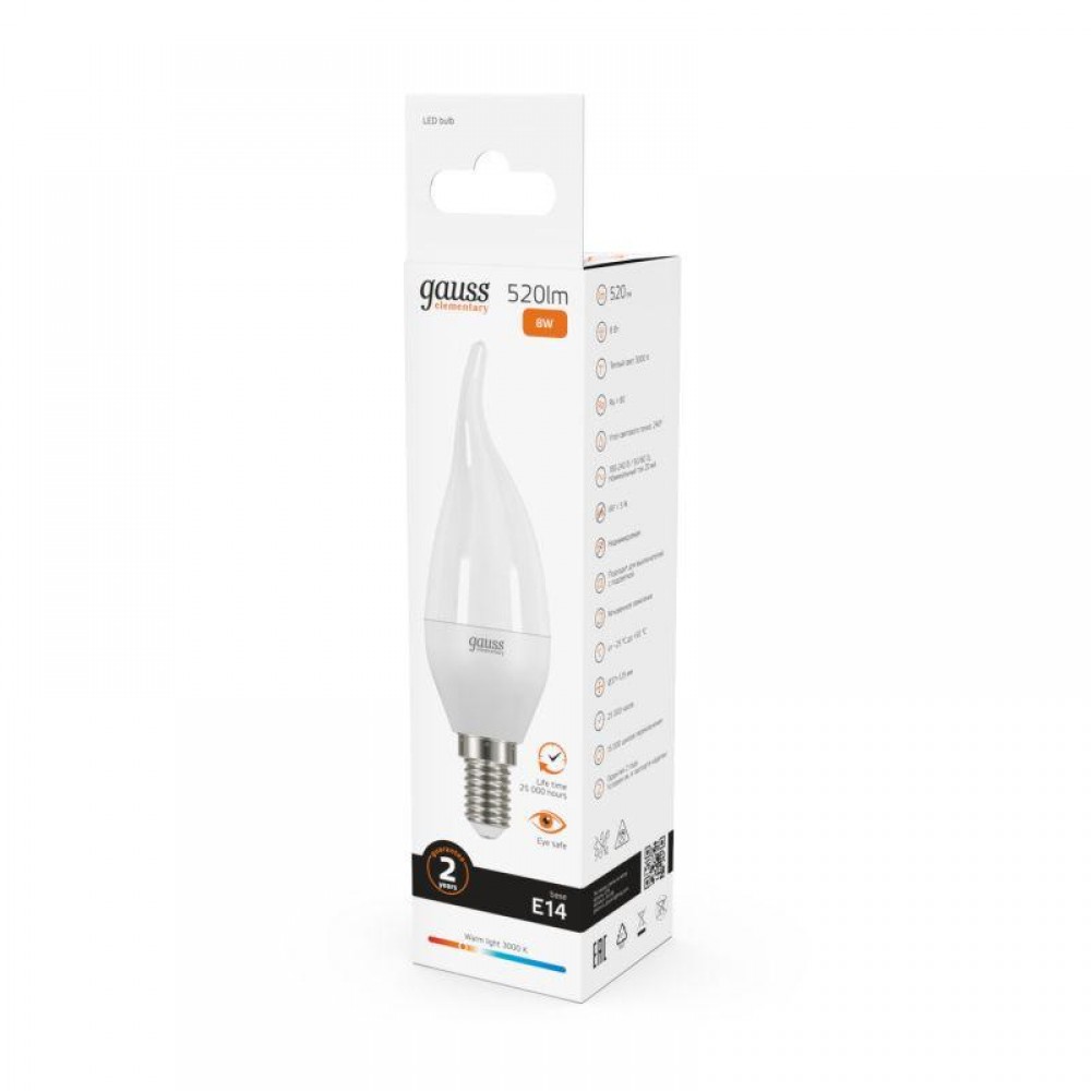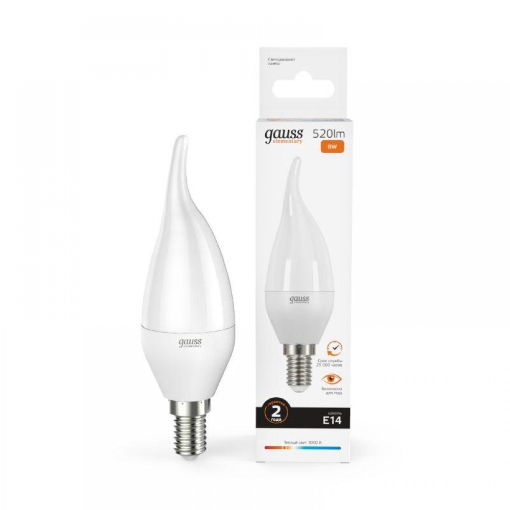 Лампа светодиодная Elementary 8Вт свеча на ветру 3000К тепл. бел. E14 520лм GAUSS 34118
