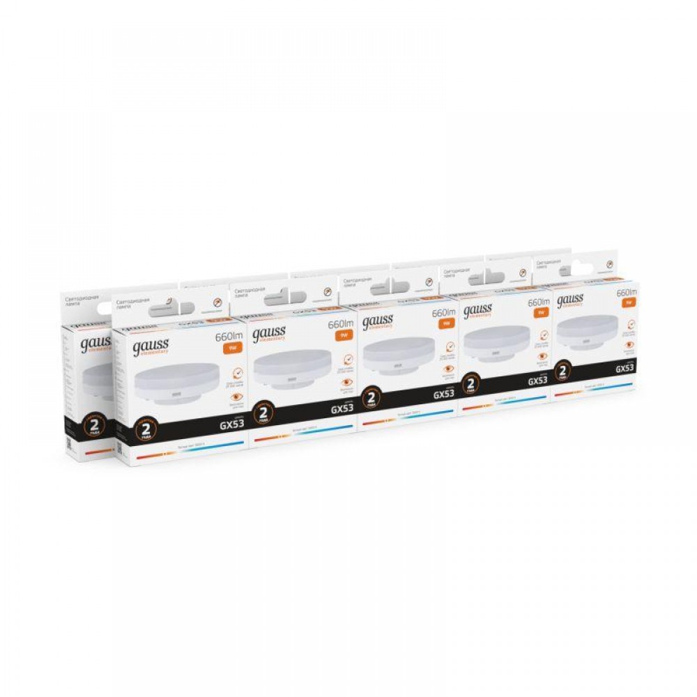 Технические характеристики Лампа светодиодная Elementary 9Вт таблетка 3000К тепл. бел. GX53 660лм GAUSS 83819