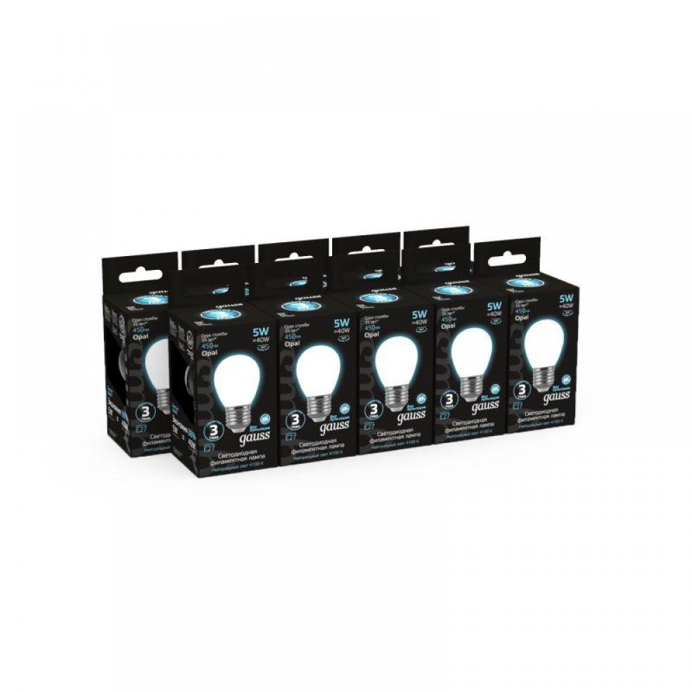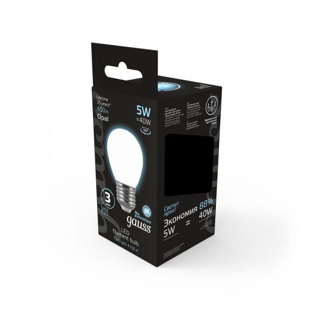 Технические характеристики Лампа светодиодная филаментная Black Filament 5Вт P45 шар матовая 4100К нейтр. бел. E27 450лм GAUSS 105202205