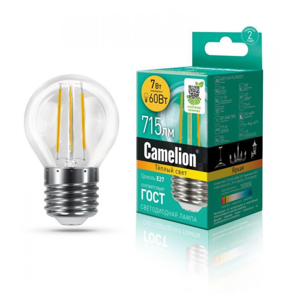 Лампа светодиодная филаментная LED7-G45-FL/830/E27 7Вт 220В Camelion 13457