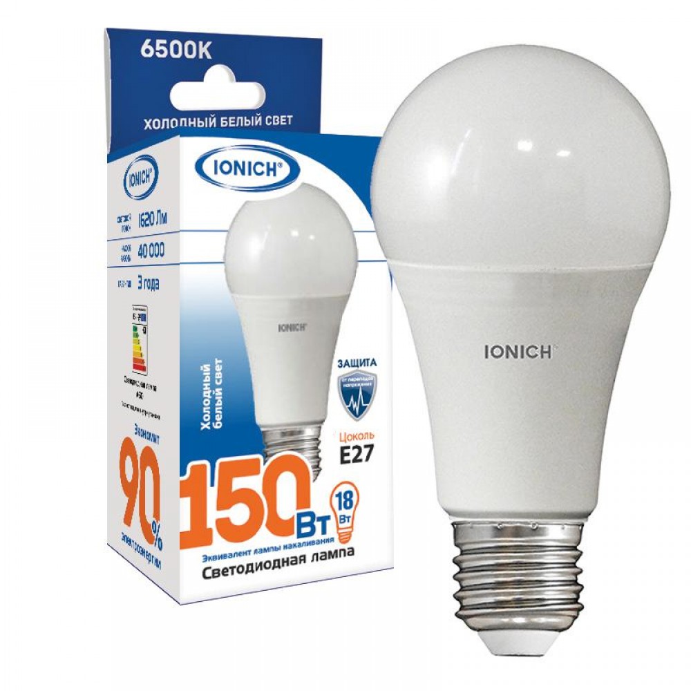 Технические характеристики Лампа светодиодная ILED-SMD2835-A60-18-1500-220-6.5-E27 IONICH 1616
