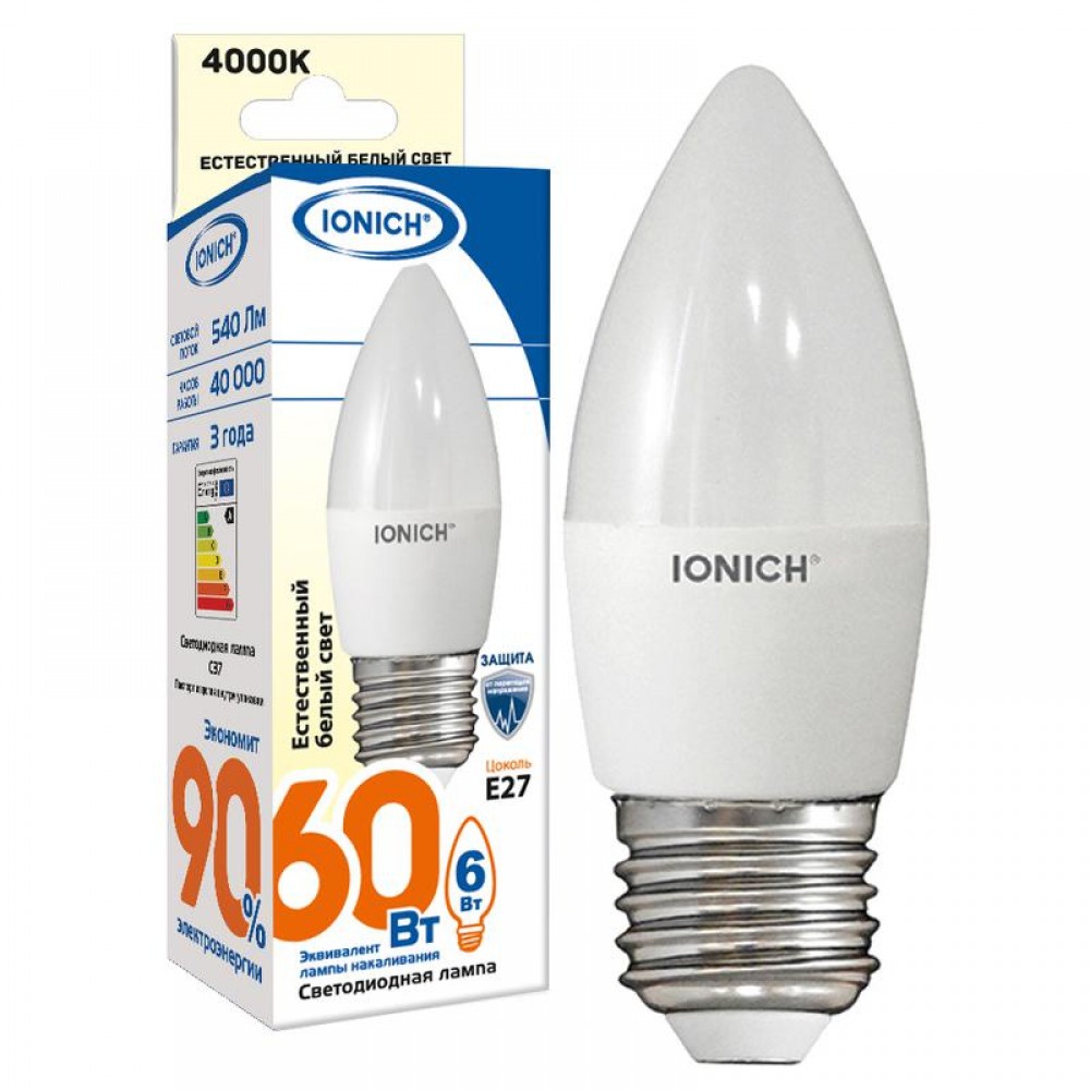 Технические характеристики Лампа светодиодная ILED-SMD2835-C37-6-540-220-4-E27 (0162) IONICH 1532