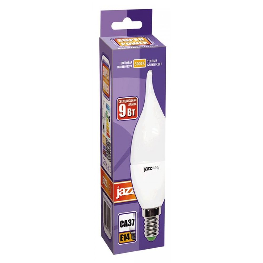 • Лампа светодиодная PLED-SP 9Вт CA37 свеча на ветру 3000К тепл. бел. E14 820лм 175-265В JazzWay 2859518A