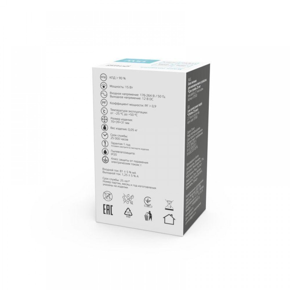 Технические характеристики Блок питания для светодиодной ленты Basic 15Вт 12В IP20 (драйвер) GAUSS BT500