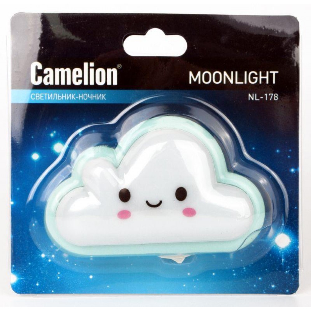 Светильник ночник предназначен для локальной подсветки в детских комнатах, спальнях, гостиных. Camelion NL-178 "Облако", питание от сети 220В, размер 100х60х50мм, источник света - встроенные светодиоды, мощность 0,5Вт, кол-во светодиодов - 4, пластик.