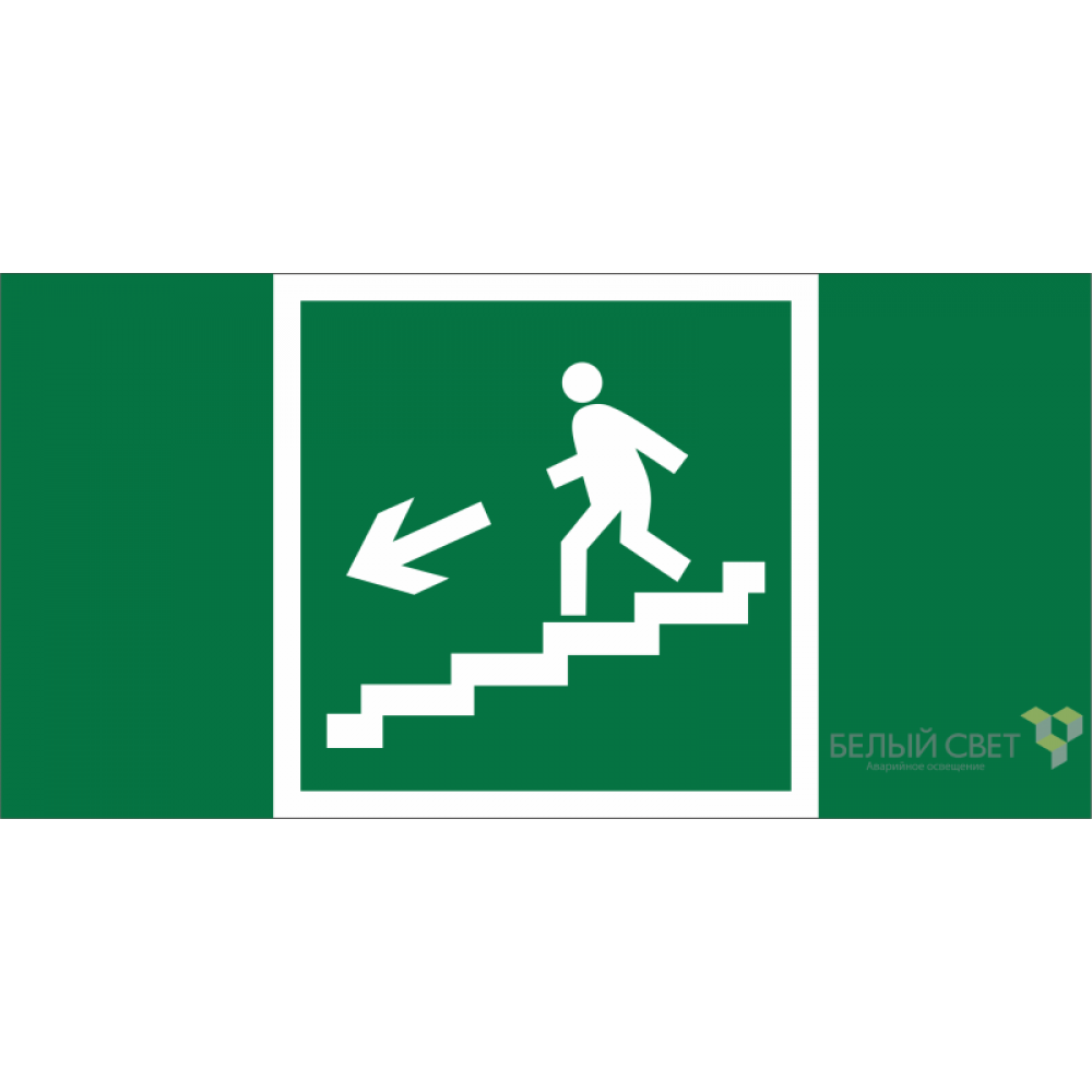 Знак безопасности BL-3517.E14 "Напр. к эвакуац. выходу по лестн. вниз (лев.) Белый Свет a12899