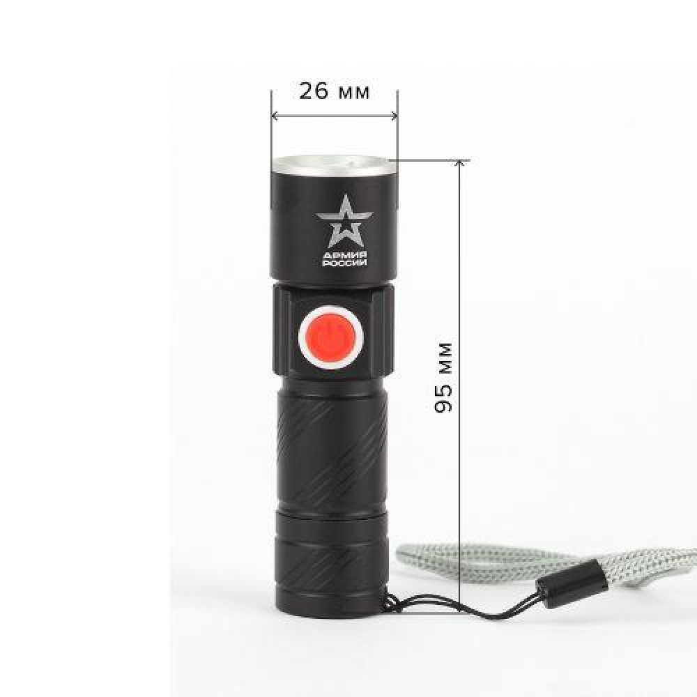 Фонарь аккумуляторный универсальный Армия России Циркон MA-601 3Вт регулир. фокус 3 режима Li USB алюм. (блист.) Эра Б0030191