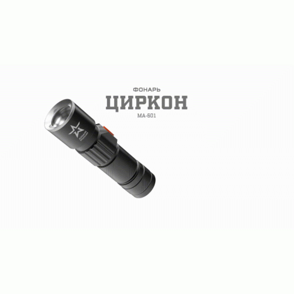 Технические характеристики Фонарь аккумуляторный универсальный Армия России Циркон MA-601 3Вт регулир. фокус 3 режима Li USB алюм. (блист.) Эра Б0030191