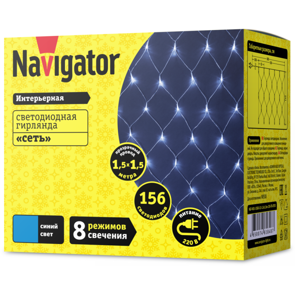 Технические характеристики Гирлянда светодиодная 61 848 NGF-N01-156B-12-1.5х1.5m-230-TR-IP20 Navigator 61848