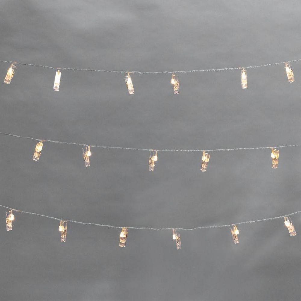Светодиодная гирлянда «Прищепки» — эффектный декор интерьера, который поможет разнообразить обстановку и создаст атмосферу уюта. На проводе длиной 5,2 метра располагаются 30 диодов, излучающих белый свет теплого оттенка. Каждый элемент имеет пластиковую прищепку, к которой можно прикрепить фото, картинку или другие легкие элементы декора. Гирлянда IP20 подходит для оформления новогодних елей, оконного текстиля, мебели и предполагает использование в помещениях с естественной влажностью воздуха. Изделие работает от сети 230 В, для подключения в розетку предусмотрен питающий шнур длиной 3 метра.