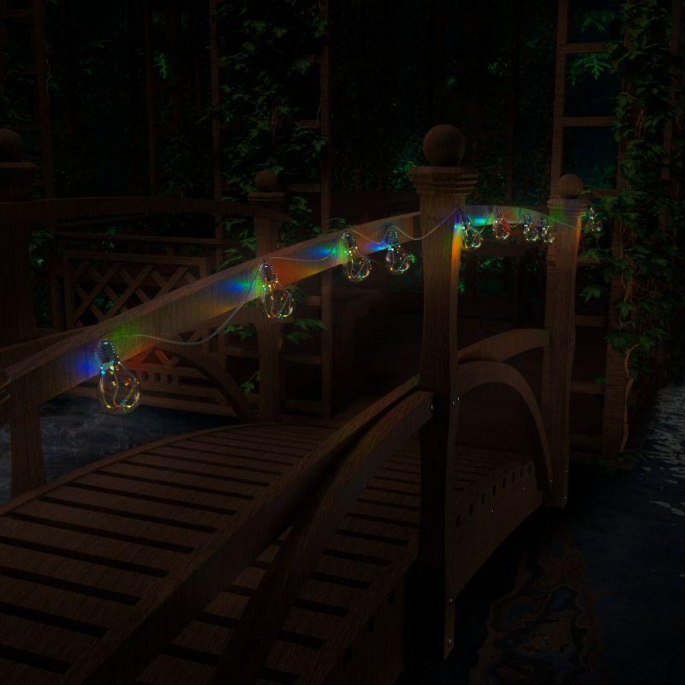 Садовая гирлянда Gauss на солнечной батарее с 10 лампами в комплекте — это классическое декоративное освещение для дачных участков и открытых парковых территорий. Такое освещение подойдет для подсветки между деревьями или фасада дома. Для подключения сеть не требуется, так как гирлянда работает на солнечной батарее. А за счет степени пылевлагозащиты IP44 садовая гирлянды будет работать во время дождя.