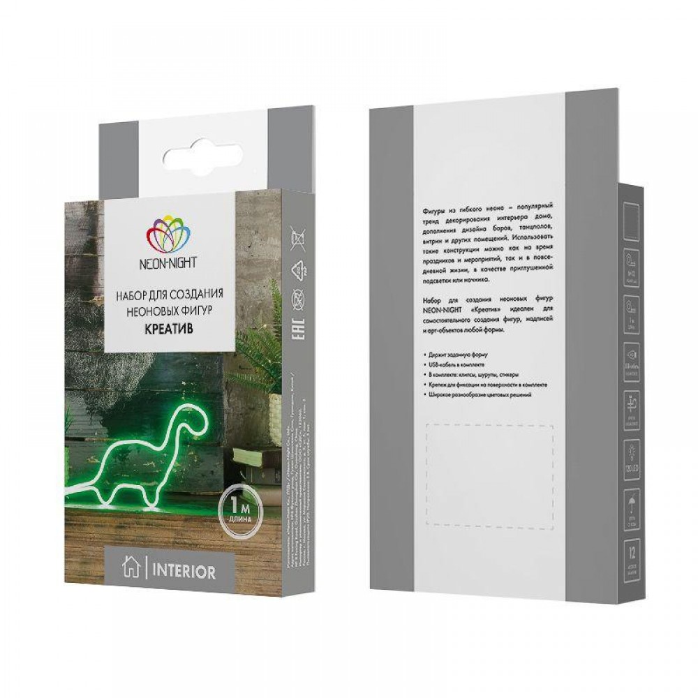 Набор для создания неоновых фигур «Креатив» станет приятным подарком, который порадует и взрослого, и ребенка. В комплекте все необходимое для монтажа оригинальных интерьерных фигур: гибкая трубка, светящаяся желтым, клипсы, скотч, винтовой крепеж и USB-кабель для питания. Изделие предназначено для использования в помещениях с нормированной влажностью и температурой воздуха 0...+40 °С. Внутри пластиковой гибкой трубки длиной 1 метр находится светодиодная лента со 120 диодами. Элементы излучают яркий свет желтого цвета.