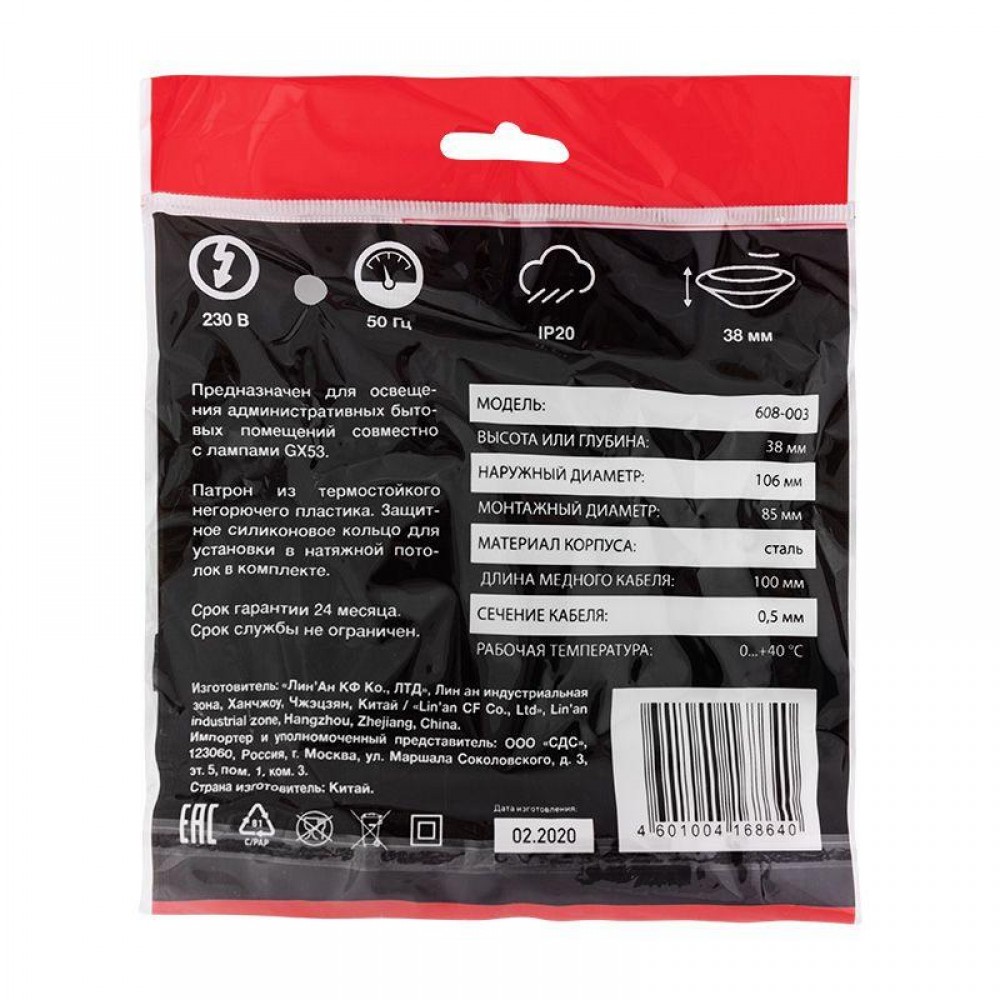 Технические характеристики Светильник металлический для лампы GX53 цвет глянцевый золотой Rexant 608-003