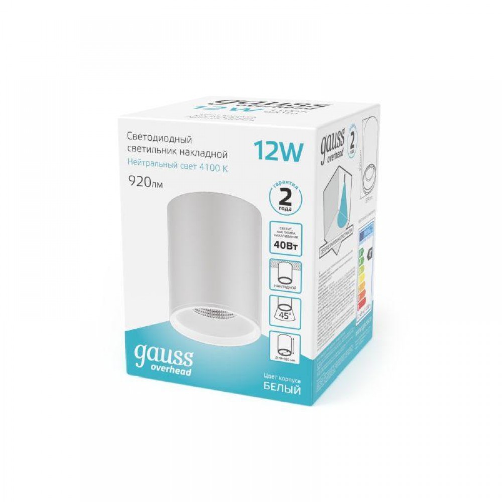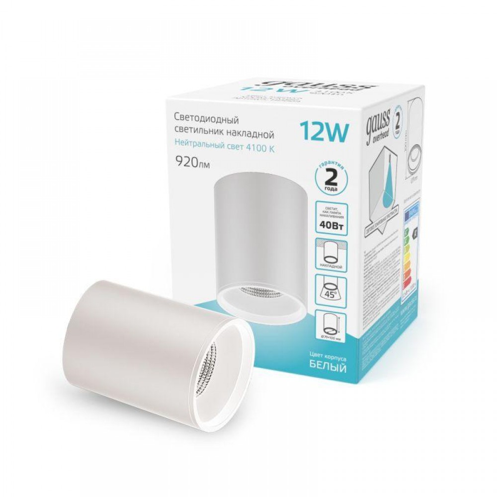 Светильник светодиодный Overhead 12Вт 4100К IP20 920лм 170-240В ДПО цилиндр накладной бел. GAUSS HD011