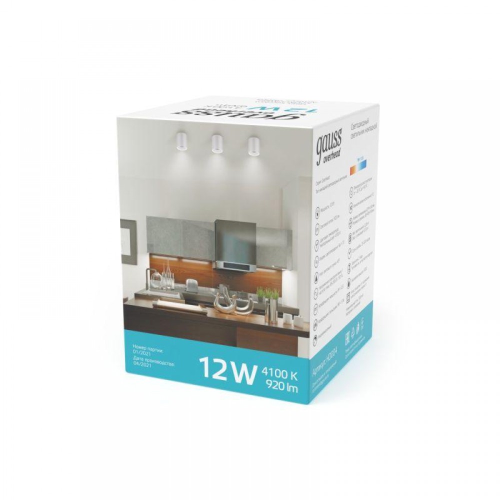 Технические характеристики Светильник светодиодный Overhead 12Вт 4100К IP20 920лм 170-240В ДПО цилиндр накладной бел. GAUSS HD011