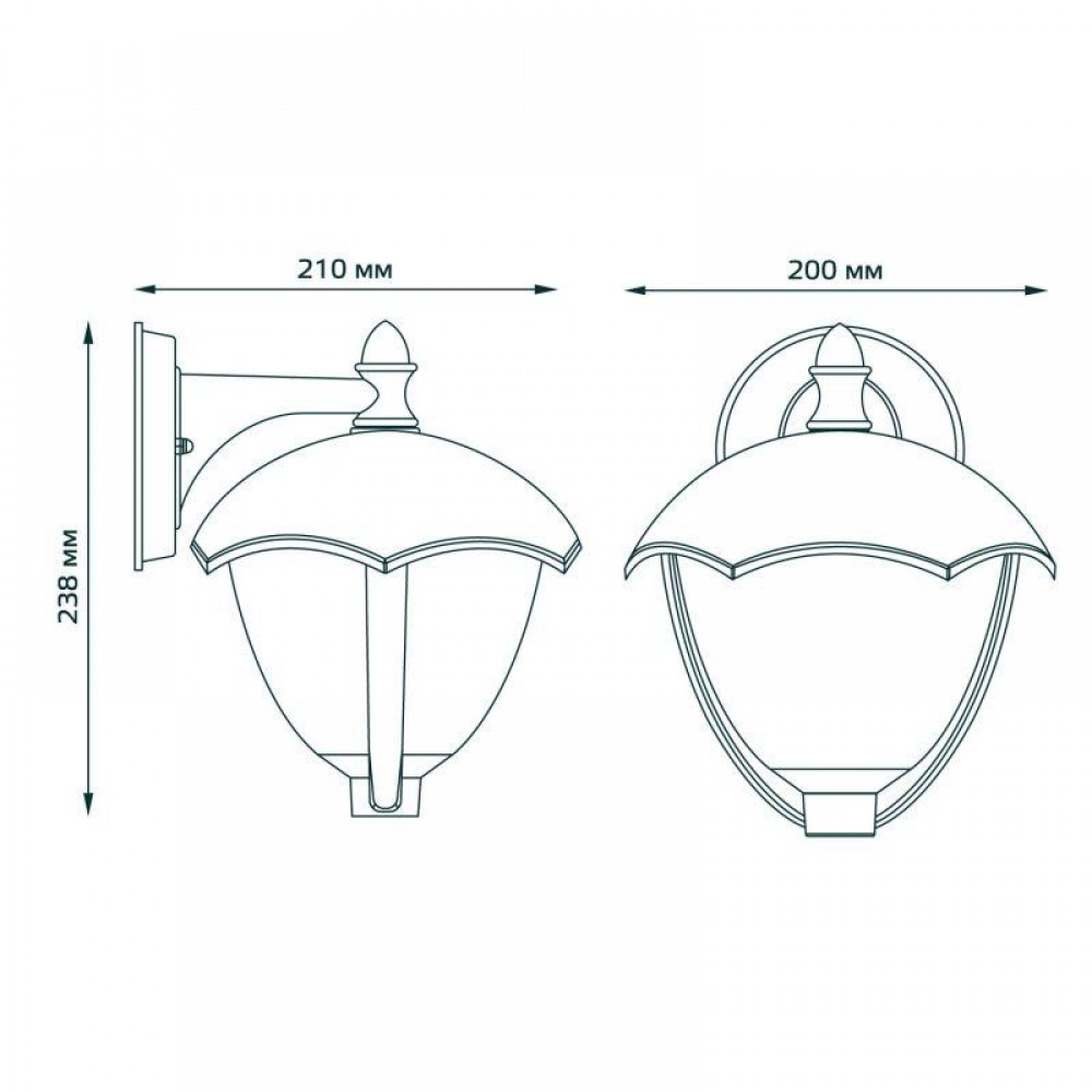 Технические характеристики Светильник Aura 1х60Вт E27 IP54 188х210х238мм НТУ садово-парковый на стену вниз GAUSS GD028