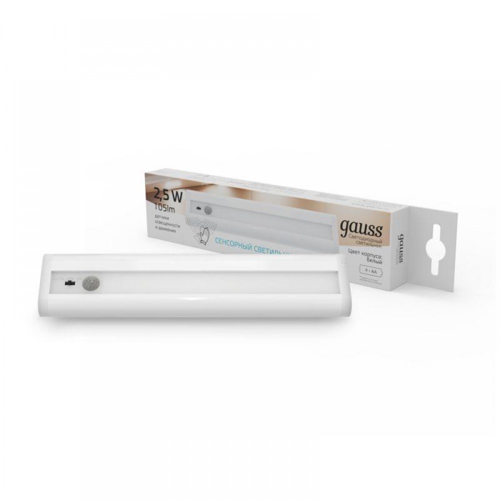 Линейные светодиодные светильники от Gauss- прекрасное решение для подсветки рабочей зоны на кухне, письменного стола, в мастерской или в любом другом пространстве. Сенсорный выключатель позволяет удобно управлять освещением. В зависимости от модели для включения светильника достаточно только приблизиться к нему или произвести легкий взмах рукой или сделать короткое касание к корпусу. Сенсорные светильники Gauss выполнены из алюминия, поэтому обладают легким весом и прочной конструкцией. Светильники различаются по мощности, световому и длиной самого светильника. Особенностью светильников от Gauss является возможность последовательного соединения в линейку нескольких светильников с помощью коннекторов и простая установка – достаточно их приклеить к поверхности с помощью двухстороннего скотча или прикрепить его с помощью металлических скоб. Набор установочных креплений для двух вариантов монтажа входят в комплектацию данного изделия.