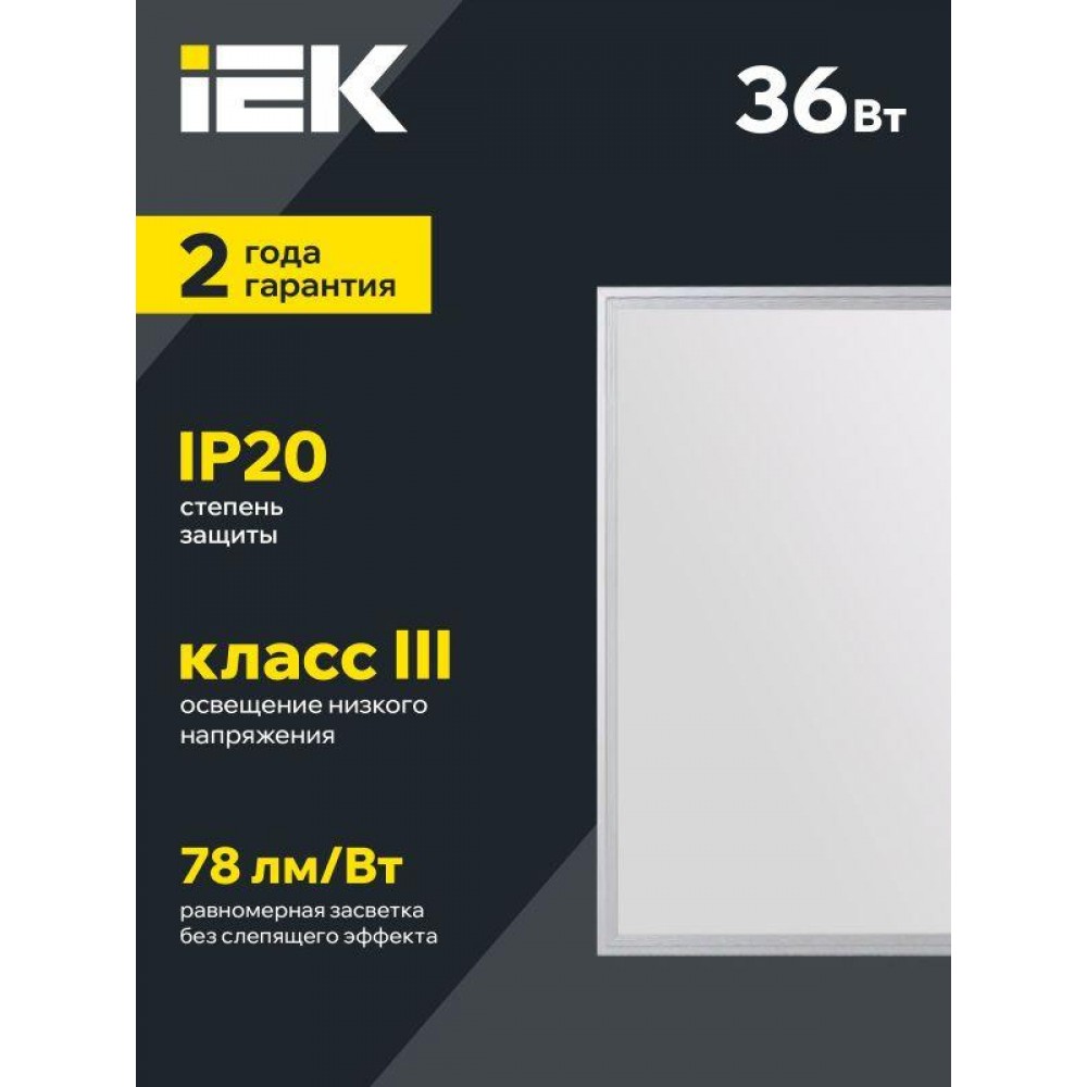 Технические характеристики Светильник светодиодный ДВО 6565 eco 36Вт S 4000К панель ультратонкая (без драйвера) IEK LDVO0-6565-36-0-4000-K01