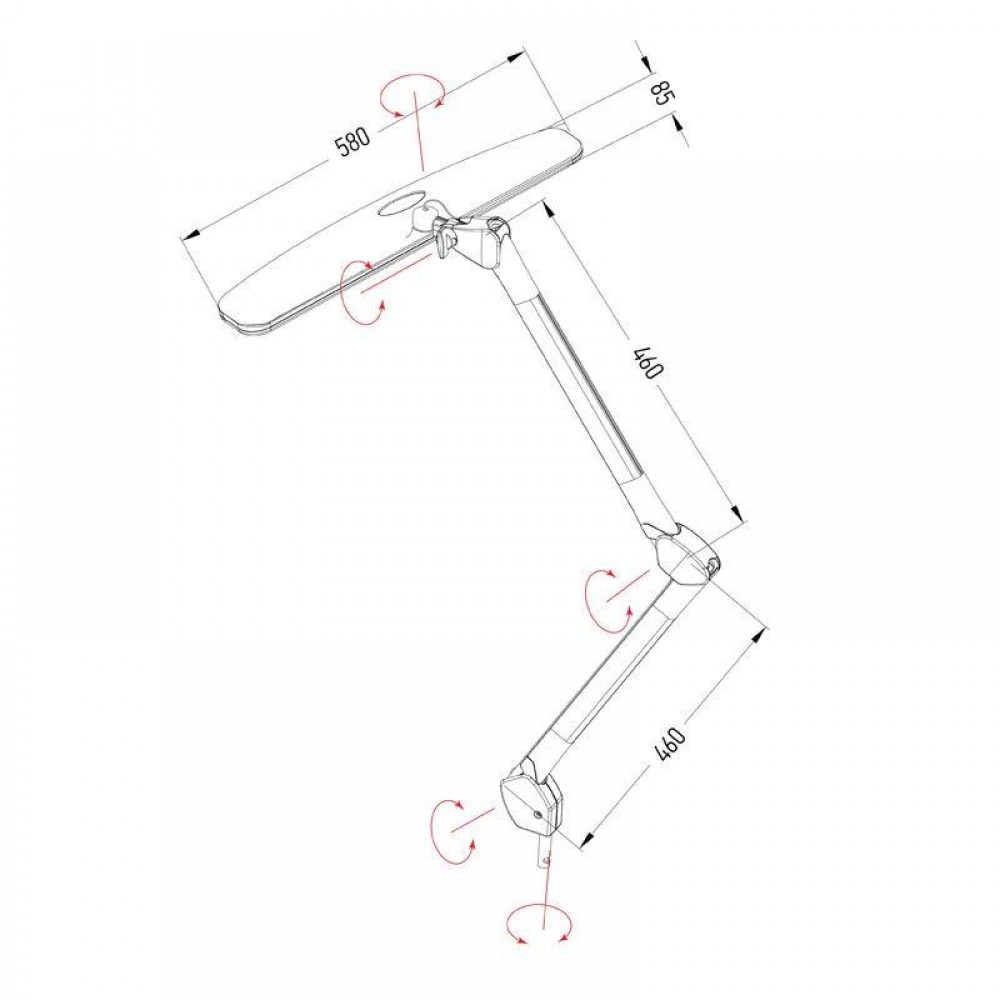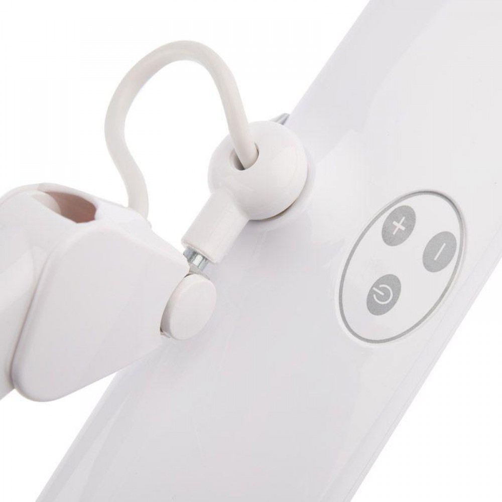 Лампа настольная на струбцине, 84 LED, с регулировкой яркости, белая. Применяется в качестве дополнительного источника освещения рабочего места в офисе или дома. Лампа может быть использована для организации работы в темное время суток. Изделие оснащено механизмами, которые обеспечивают точную и надежную фиксацию в любом удобном для Вас положении. Диоды лампы стабилизированы, защищены от повреждений и загрязнений пластиковой крышкой. Зажав специальную кнопку, расположенную на корпусе устройства, можно увеличивать и уменьшать яркость свечения. Также предусмотрена кнопка управления количеством работающих светодиодов: первая лента, вторая лента, все светодиоды. Прибор крепится на любую плоскую горизонтальную поверхность с помощью струбцинного зажима. Благодаря лаконичному приятному дизайну устройство станет стильным дополнением Вашего рабочего пространства.