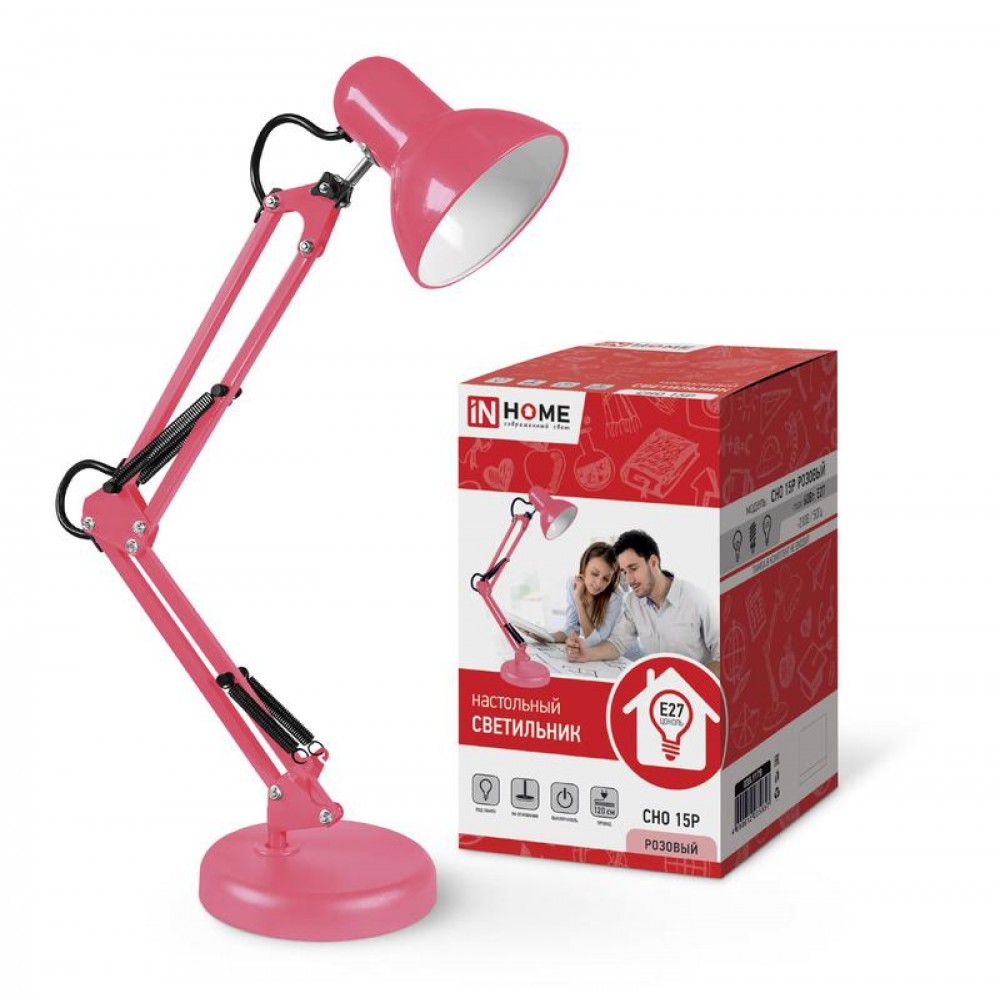 • Светильник настольный СНО 15Р 60Вт E27 230В под лампу на основании роз. (кор.) IN HOME 4690612035857