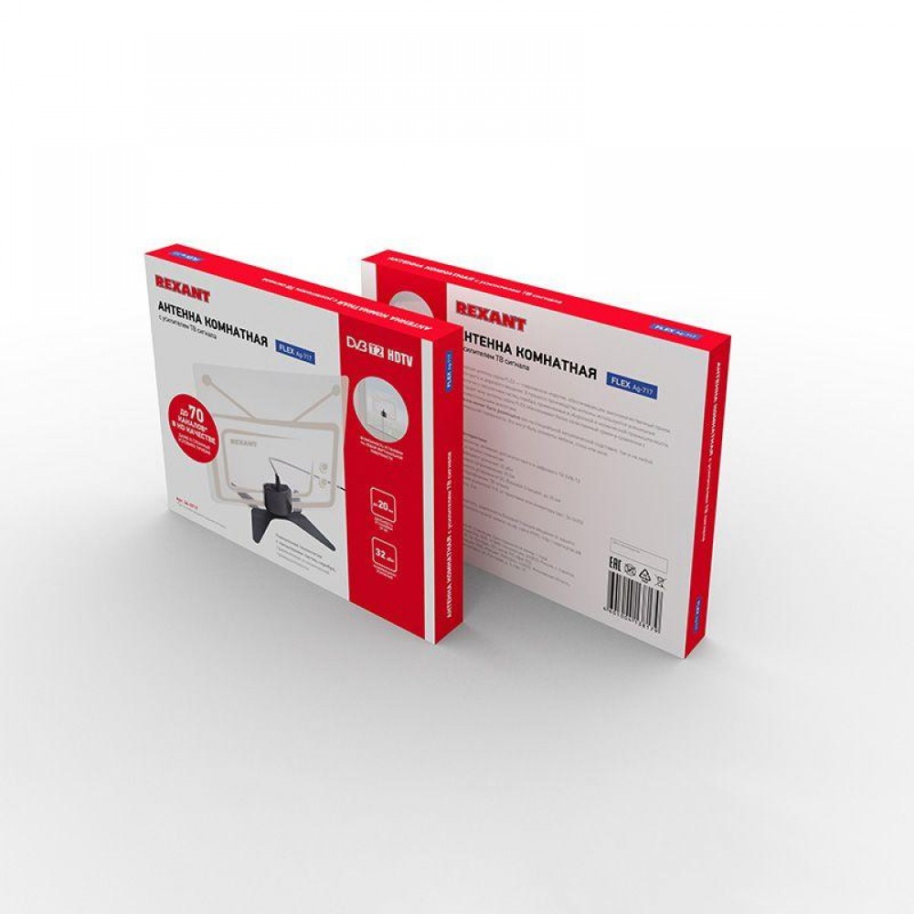 Активная антенна REXANT используется для приема цифрового эфирного вещания на современных телевизорах или комбинированных ресиверах, укомплектованных тюнером стандарта DVB-T2. Предназначена для комнатной установки.
