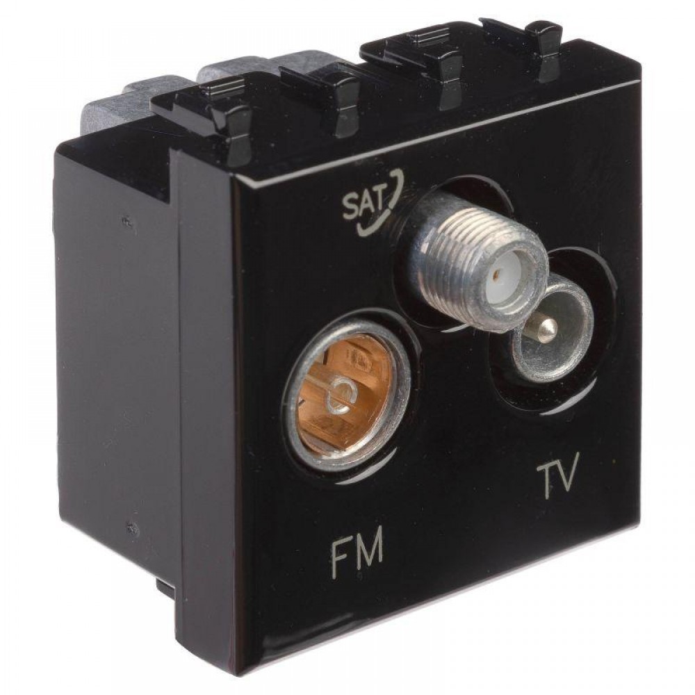 • Розетка телевизионная TV/FM/SAT 2мод. 16А Avanti "Черный квадрат" DKC 4402532