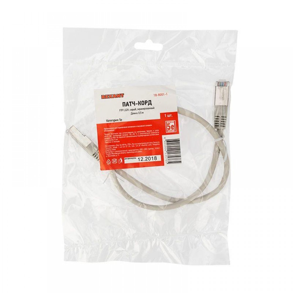 Патч-корд F/UTP кат.5e RJ45-RJ45 LSZH экранир. 0.5м сер. Rexant 18-8001-1