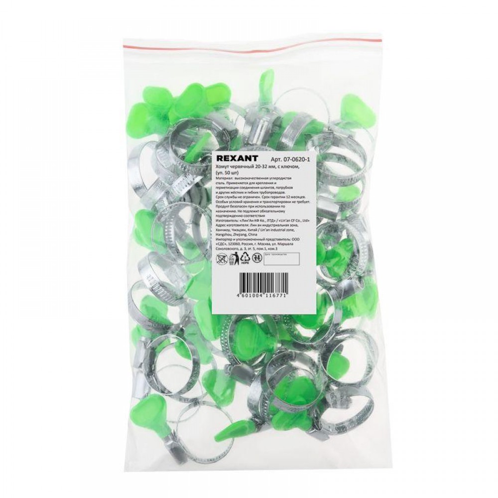 Хомут стальной червячный 20-32 с ключом W (Россия) Rexant 07-0620-1