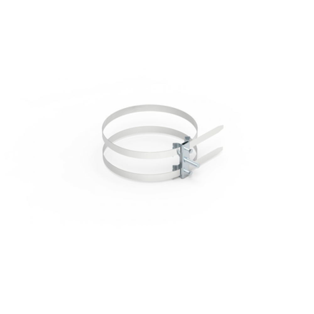 Двойной трубный хомут используется для крепления молниеприемных мачт на трубы большого диаметра с применением держателей NK3105. Материал - нержавеющая сталь. Диапазон зажима трубы - до 500 мм.
